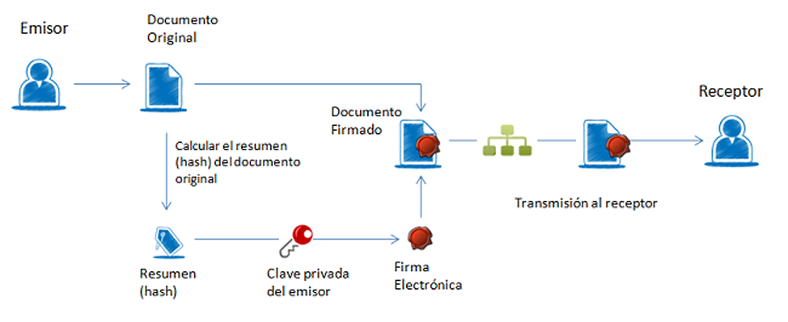 El procés bàsic que se segueix per a la signatura electrònica és el següent: